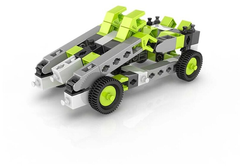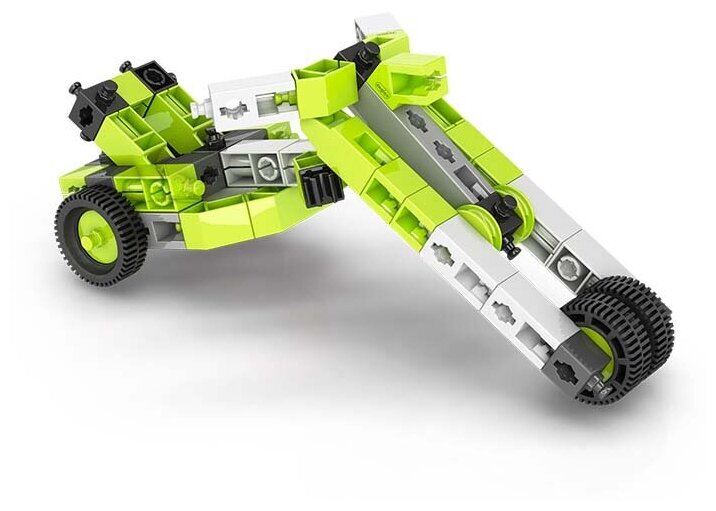 С помощью конструктора Engino Inventor ваш ребенок сможет собрать один из 30 вариантов движущихся моделей машин с электродвигателем. Комплект включает 120 элементов конструктора, в том числе электродвигатель, 6 резиновых покрышек и инструмент для моментального разъединения мелких деталей, а также красочную схематичную инструкцию с примерами для сборки 4 моделей (дополнительные инструкции для сборки еще 26 моделей можно скачать с интернет-сайта производителя). Ребенок сможет сконструировать свои модели, подключив воображение. Новая серия Inventor разработана для максимального развития воображения, инженерного мышления, креативности.