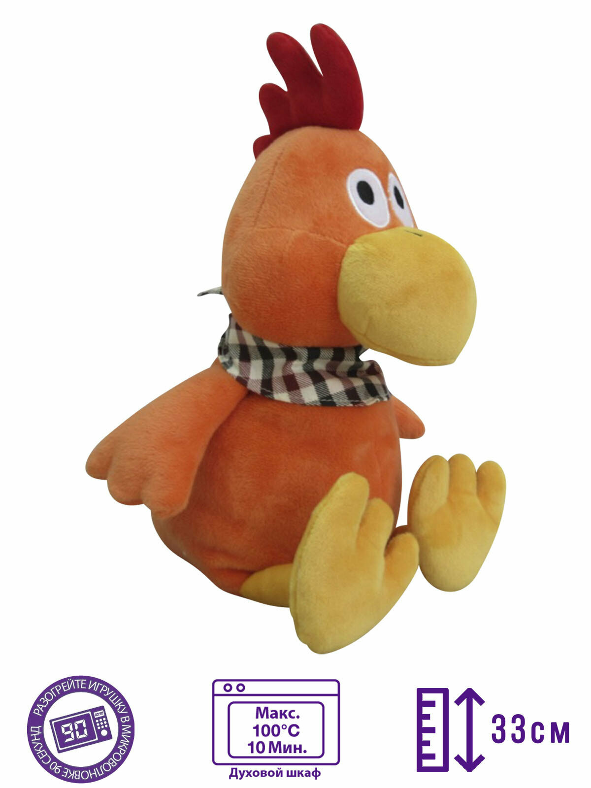 Классическая игрушка-грелка Cozy Plush™ Петух - горячий друг, который пригодится в холодные ночи, когда болит живот или просто, когда вы захотите прижаться к теплой мягкой любимой игрушке. Через пару минут в микроволновке (в зависимости от мощности) игрушка будет дарить Вам тепло несколько часов. Пропитаны маслом лаванды, чтобы Вы могли наслаждаться успокаивающим эффектом ароматерапии. Просто добавьте несколько капель, чтобы обновить прекрасный аромат, когда это потребуется. Материал внутри:6% полифилл, 93% обработанные зерна проса, 1% сушеная лаванда.