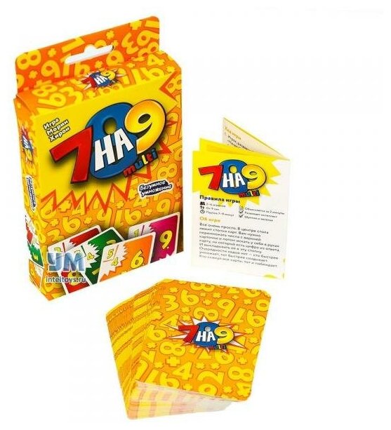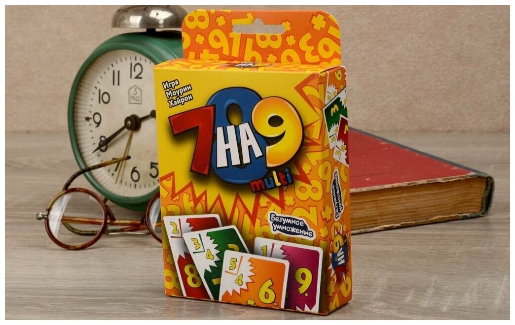 7 на 9 это известная игра для всей семьи. В обычной 7 на 9 надо складывать числа, а в Мульти умножать! Очень крутой тренажёр для того, чтобы дети закрепили таблицу умножения, а взрослые поняли, что забыли её, и надо учить снова. Играется быстро, шумно, весело, и партия проходит минут за 10, так что можно сыграть несколько раз, или играть в 7 на 9 в перерывах между сложными играми.