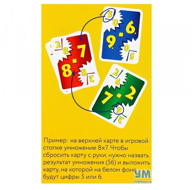| Состав набора | 61 карта с числами-множителями и цифрами-ответами, небольшие правила с иллюстрациями |