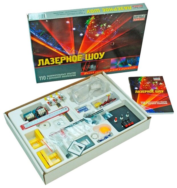 Набор дает первоначальные представления о световых явлениях. В составе — маломощный лазер. «Лазерное шоу» позволяет проследить тысячелетнюю историю эволюции представлений человека о природе света. Все, кто интересуется исследованиями световых эффектов, смогут провести более 100 различных экспериментов. При помощи маломощного лазера и книги-руководства (входящих в набор) вам откроются новые секреты световых явлений. Набор предназначен для школьников старше 7 лет и всех, кто интересуется исследованиями природы света. Мальчики с раннего детства «болеют» лазерными мечами из «Звездных войн», пушками из будущего, которые стреляют световыми лучами в других фантастических фильмах. Не все дети знают, что лазер стал неотъемлемой частью современной медицины, производства металлов, высоких технологий. А новый набор от «Научных развлечений» раскроет все эти замечательные свойства лазера.