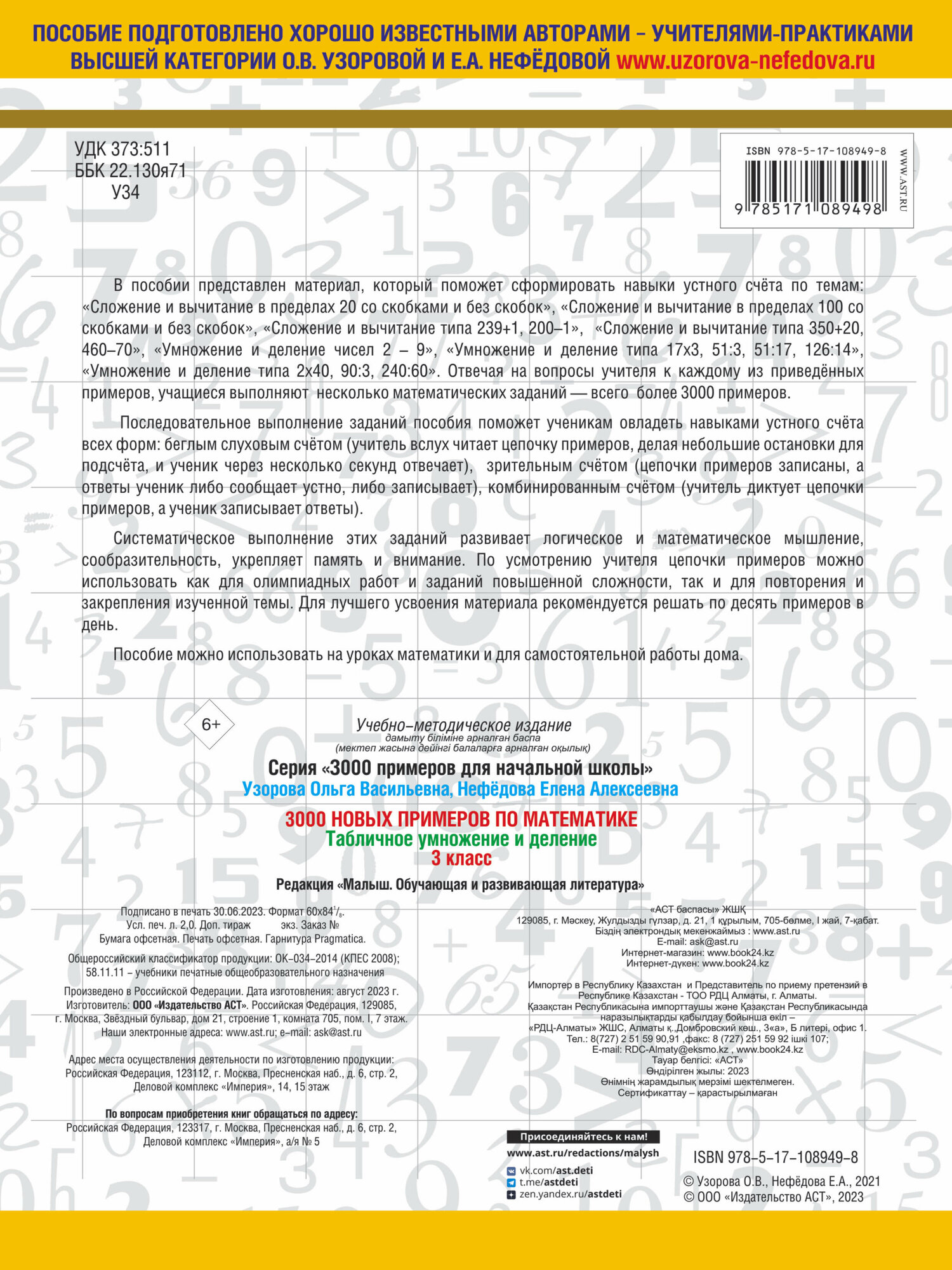 3000 примеров по математике. 3 класс. Цепочки примеров. Счёт в пределах 1000 (Елена Алексеевна Нефедова, Ольга Васильевна Узорова); АСТ, 2024