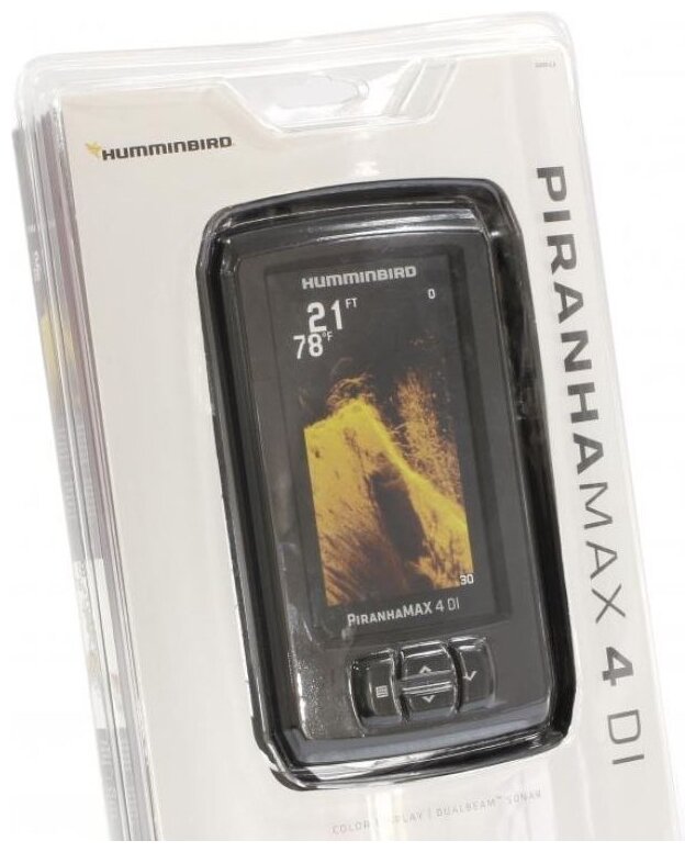 При покупке эхолота Humminbird PiranhaMAX 4 аккумулятор 7Ам в подарок! Ваша экономия 1000 рублей! Модель Humminbird PiranhaMAX 4x является одной из лучших в своей серии. Это практичное устройство для отличного отображения подводных объектов. У этого эхолота новый TFT-дисплей, цветной, с большим разрешением 480×272 пикселей. Модель относится к числу двухлучевых, она позволяет получить четкое изображение картины подводного мира. Защита обеспечивается надежным водонепроницаемым корпусом.