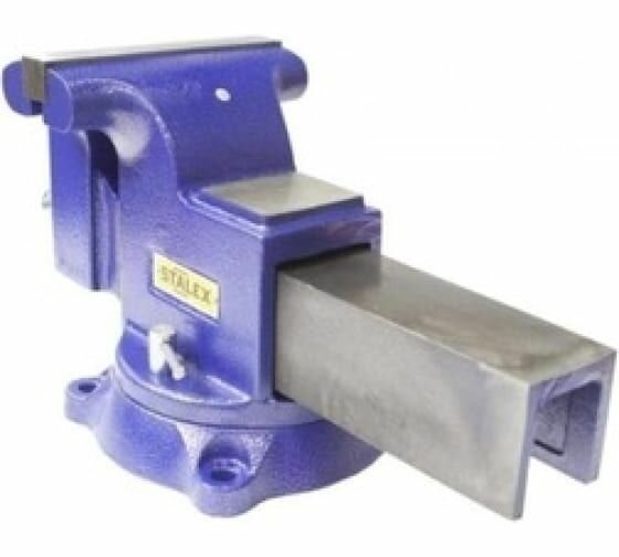 Слесарные тиски Stalex «Гризли» предназначены для применения в различных условиях: от домашней мастерской или автосервиса до крупных предприятий. Изготовлены из высокопрочного специального чугуна. Закалённые и шлифованные губки имеют насечки для прочного крепления детали. Порошковая покраска на тисках обеспечивает образование ударопрочного и антикоррозийного покрытия, которое работает в широком температурном диапазоне, при этом резкие смены температуры не влияют на качество порошковой краски. Закрытый ходовой винт тисков защищен от попадания металлической стружки и опилок. Тиски имеют возможность поворота на 360° относительно своего основания. Зев тисков предназначен для крепления трубы в тисках.