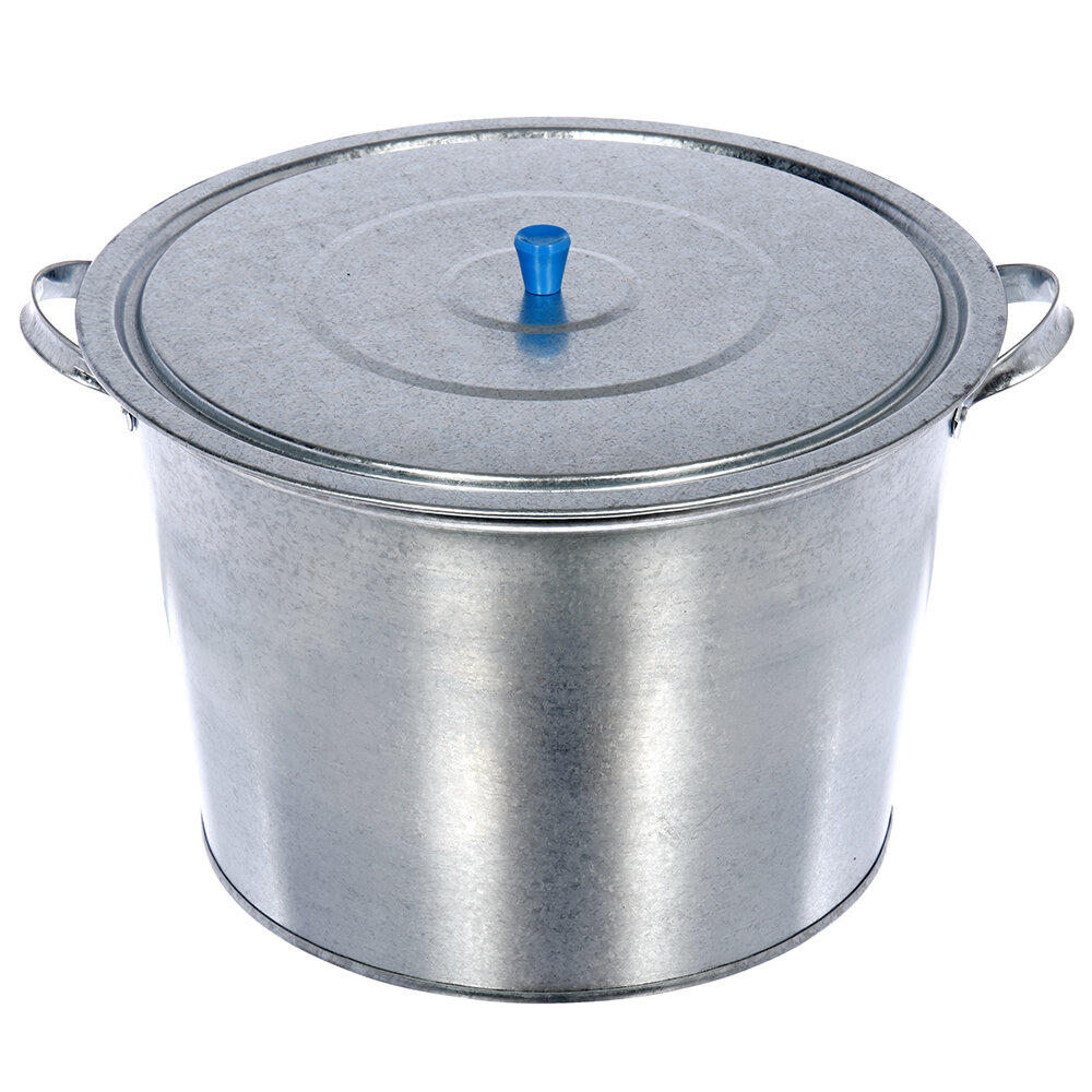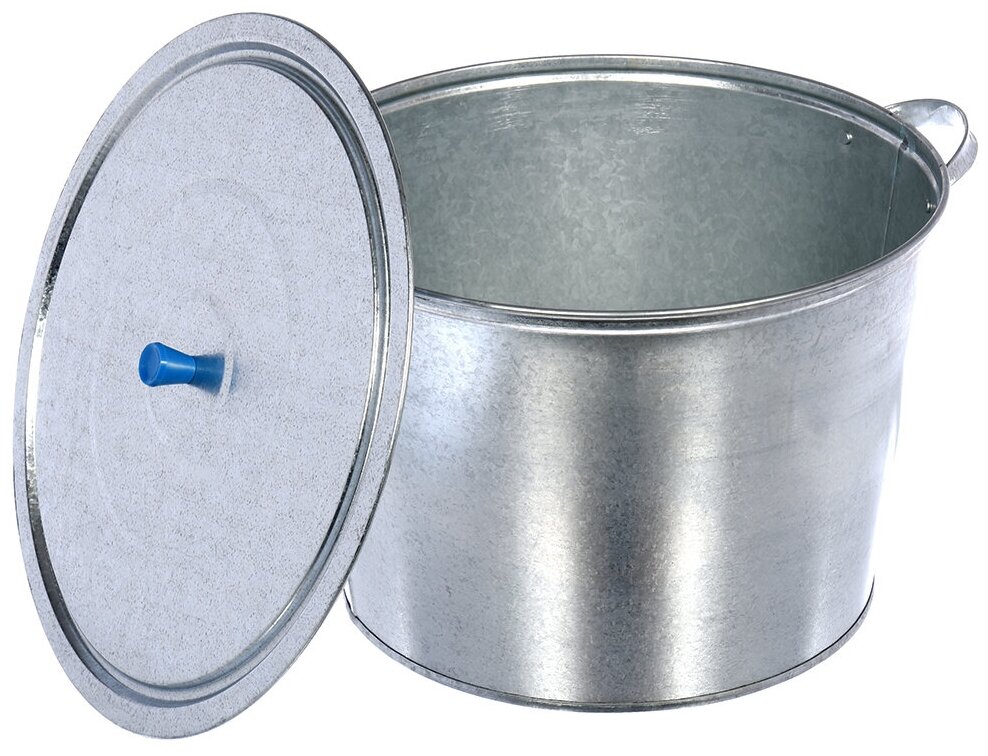 Изделие представляет собой емкость с крышкой и двумя ручками для удобной транспортировки тары. Бак выполнен из стали с оцинкованным покрытием. Готовое изделие обладает повышенными прочностными и эксплуатационными характеристиками. Устойчиво к коррозии и повреждениям.
