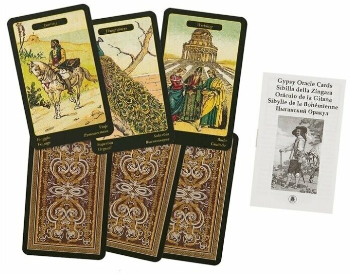 Этот Оракул - репродукция колоды 1800 года, сохранивший в себе аромат старины и легкую ностальгию по бесхитростной жизни прошлых веков, когда люди безоговорочно доверяли гаданию цыганок. Цыгане, мастера предсказательного искусства - древний народ, согласно легенде, обладающий тайными знаниями и познакомивший Европу с картами Таро.