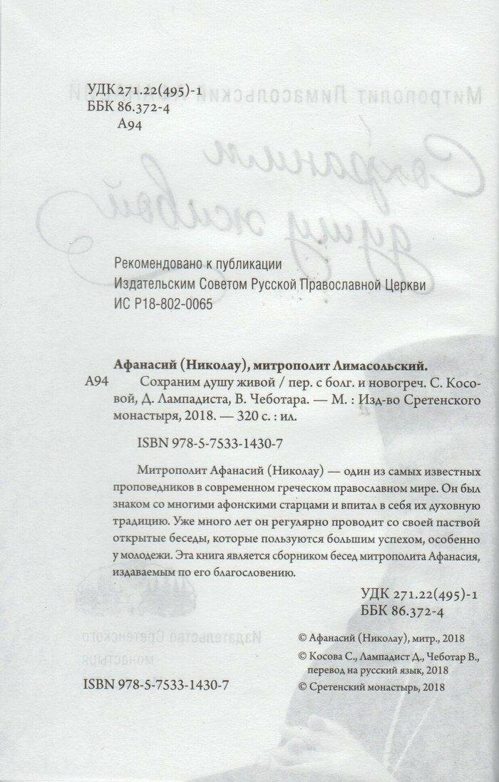 Книга: Сохраним душу живой (Митрополит Лимасольский А. (Николау)); Издательство Сретенского монастыря, 2018