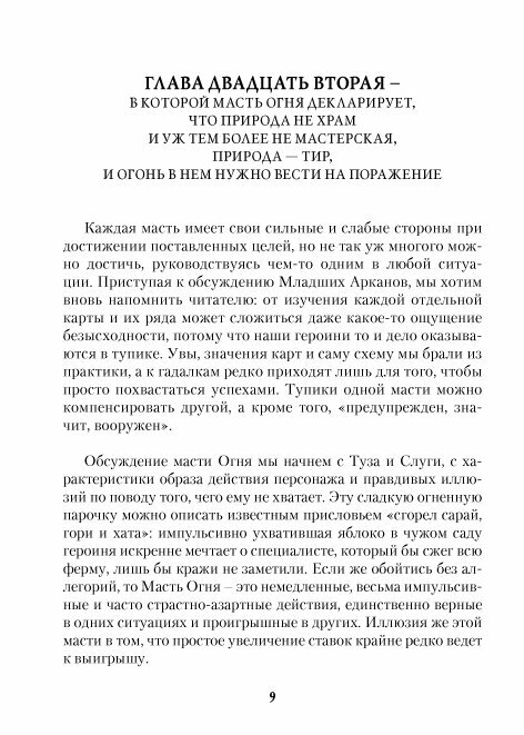 Приобретала 2 тома сразу, к колоде, для более широкого и глубокого понимания, так как мбк мне показался очень напутанным. Подробно расписывается каждая карта и её описание в разрезе не просто межличностных отношений, но и бизнес, партнерство в работа, отношения в целом. Книга написана простым языком, даётся психологический портрет каждой карте, что в принципе поможет вам в работе с толкование карт, неважно используете ли вы их для гадания или для психологической работы как метафорические.