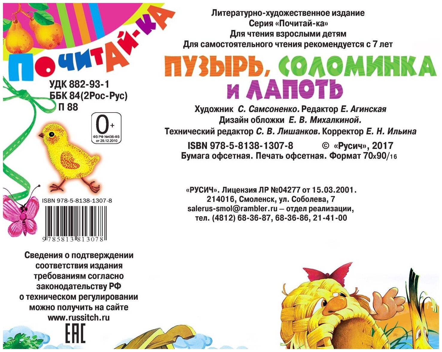 Предлагаем Вашему вниманию книгу-сказку «Пузырь, лапоть и соломинка» из серии «Почитай-ка» с красочными иллюстрациями для чтения взрослыми детям.