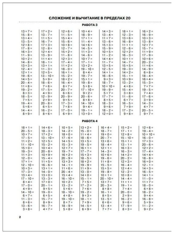 Отличное учебное пособие для тренировки устного счета у младшеклассников. Огромное количество примеров для как для устного счета, так и столбиком. Очень удобно для печати: распечатал и не болит голова, чтобы искать новые примеры. Все в одном месте. Цена очень хорошая для такого пособия. Спасибо автору!