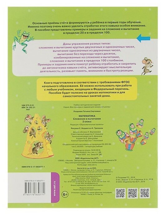 Математика. Сложение и вычитание. 2 класс (Татьяна Позднева); АСТ, Образовательные проекты, 2018