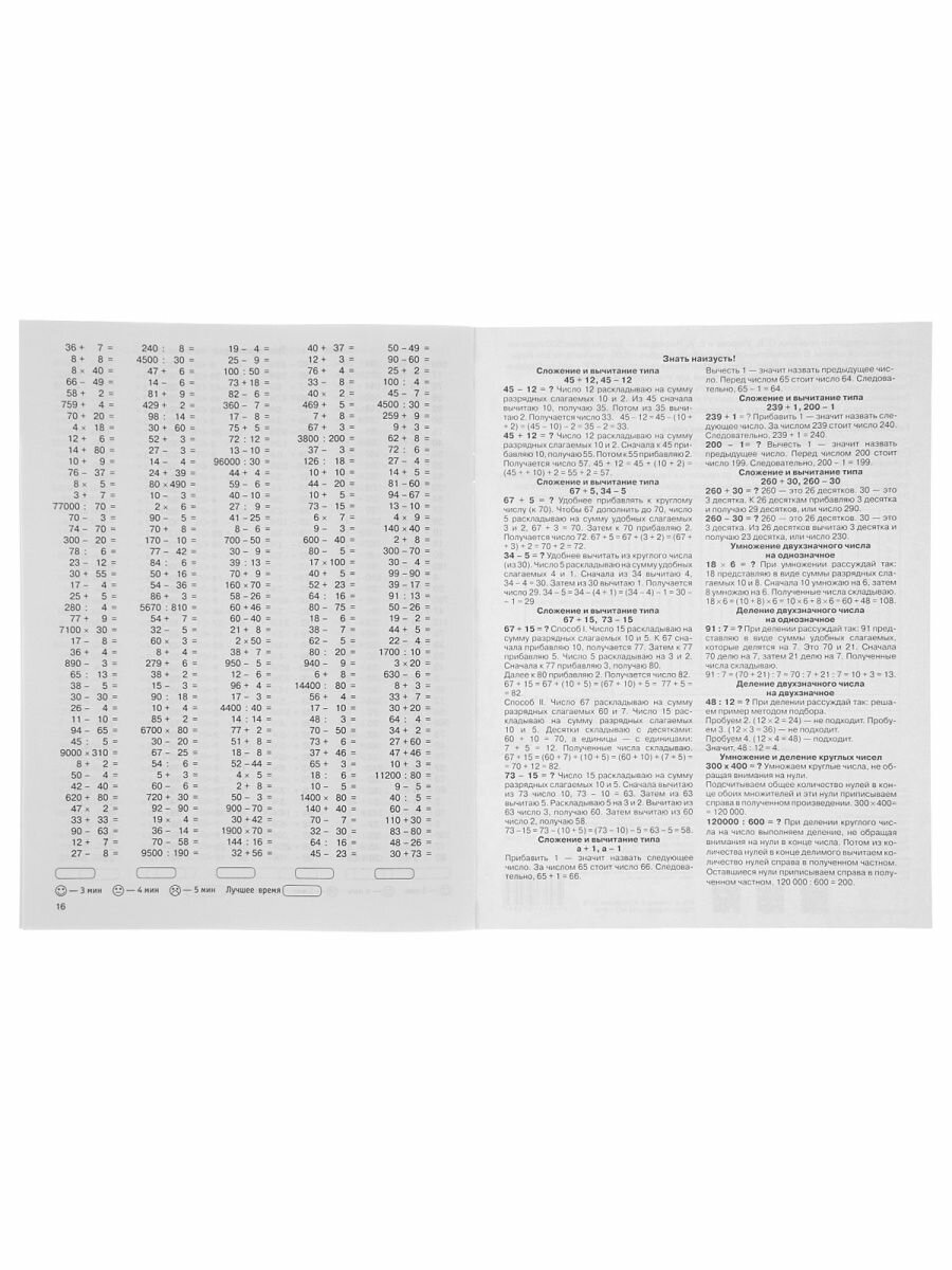 Книга классная . все оформлено очень грамотно. Удобно пользоваться ребенку. Таймер времени в конце задания позволяет ребенку самостоятельно определить оценку и ценить себя. Для детей у кого проблемы с математикой поможет наверстать и увеличит скорость решения.