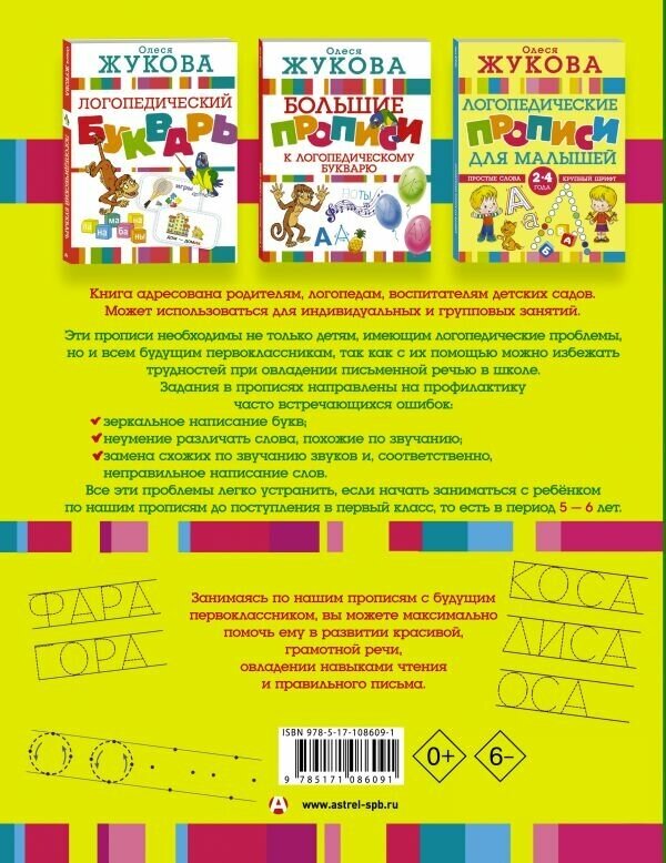 Логопедические прописи для будущего первоклассника (Олеся Жукова); Издательство АСТ, 2018