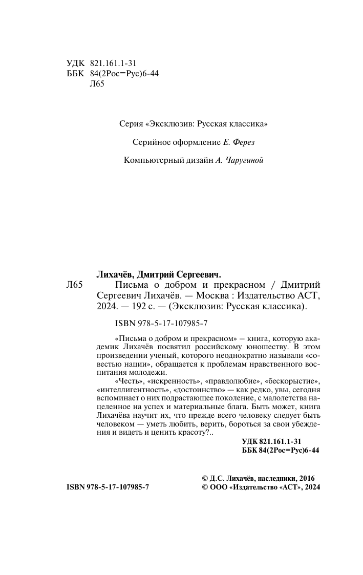 Письма о добром и прекрасном (Лихачев Дмитрий Сергеевич); ИЗДАТЕЛЬСТВО "АСТ", 2018