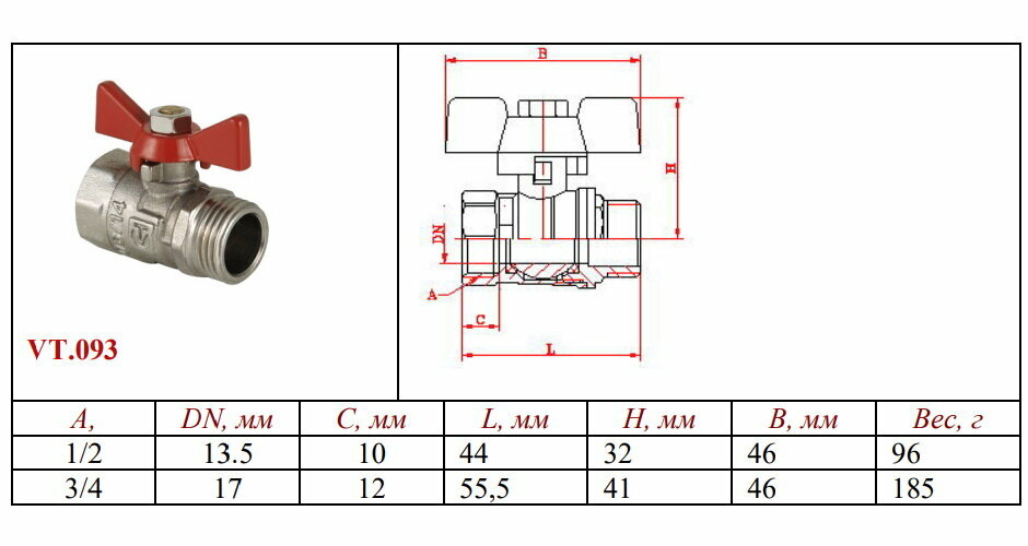 Модель: Кран шаровый COMPACT Valtec вн/нар, рукоятка бабочка 3/4"