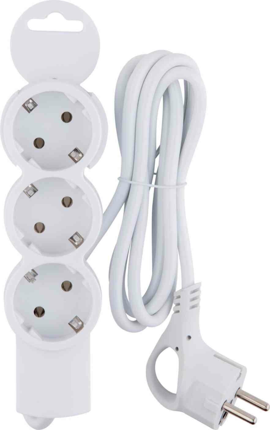 Модель: Бытовой удлинитель 3 гнезда белый 1,5 м
