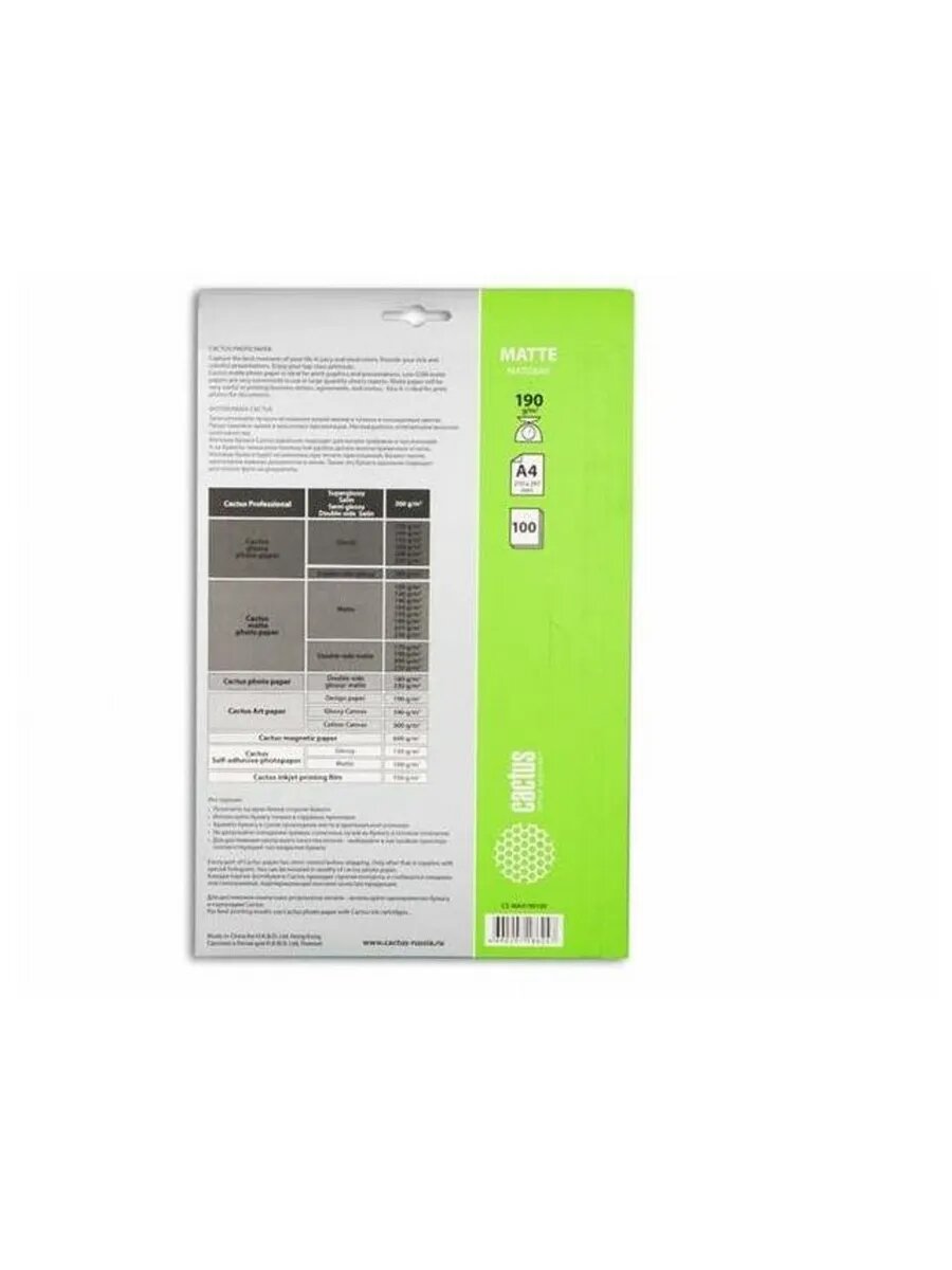 Фотобумага Cactus CS-MA4190100 A4/190г/м2/100л