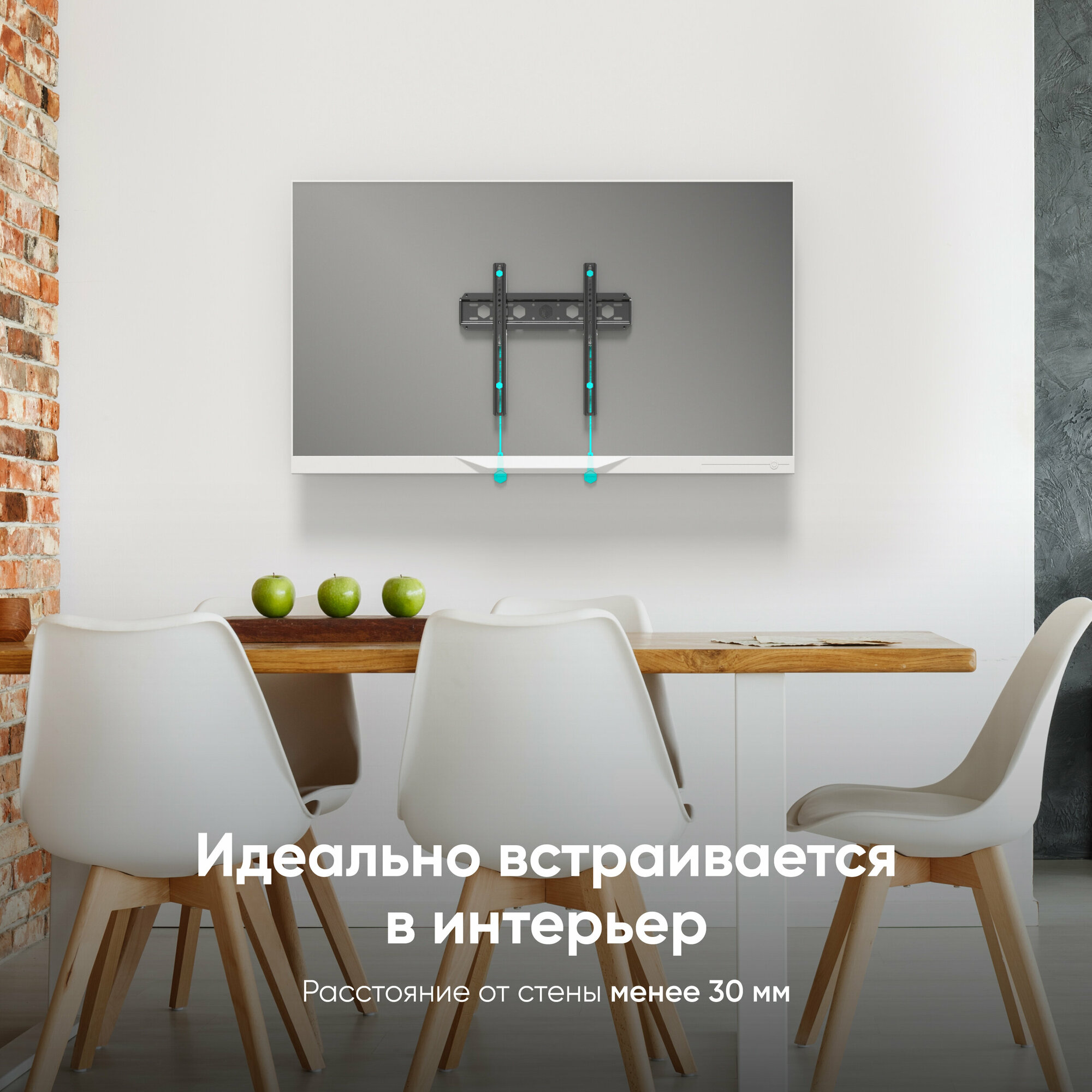 Расстояние от стены составляет 29 мм, что придает кронштейну компактный и аккуратный внешний вид, делая его почти незаметным за Вашей ТВ-панелью.