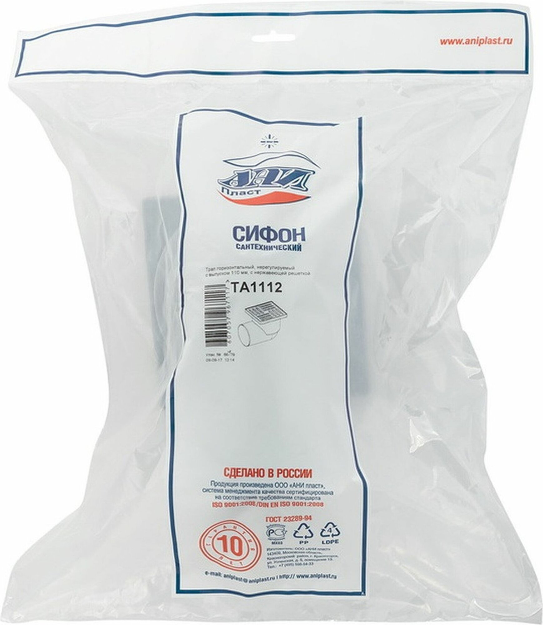 Сифоны для слива в душе АНИ Пласт Трап АНИ пласт горизонтальный выпуск D110 не регулируемый решетка из нержавеющей