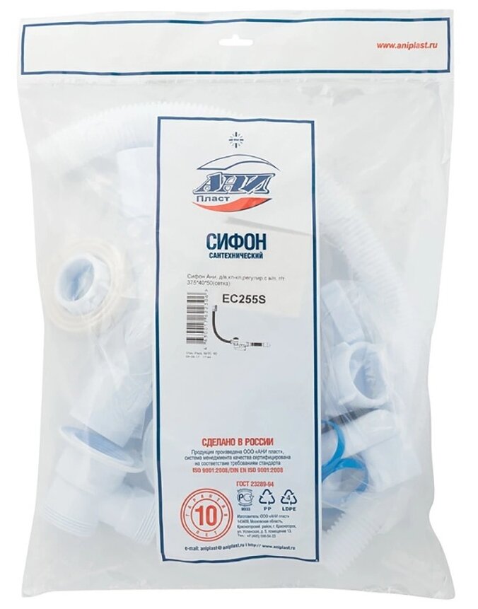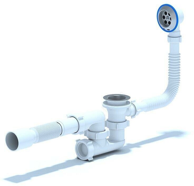 Сифон для ванны АНИ Пласт служит для удобного и комфортного регулирования уровня воды при помощи специальной кнопки-клапана и системы перелива.