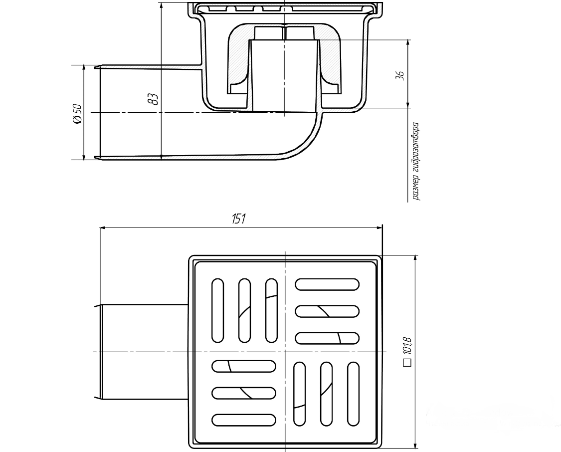 Трап не регулируемый с горизонтальным выпуском, с гидрозатвором предназначен для отвода воды с поверхности пола в систему канализации.