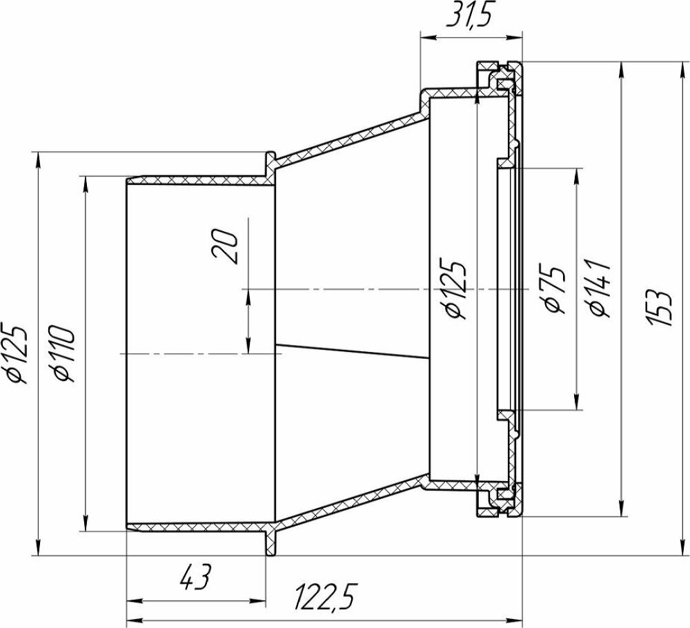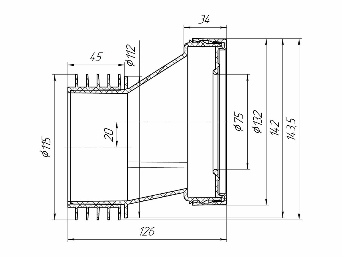 Эксцентрик жесткий для подключения выпуска унитаза с канализацией.