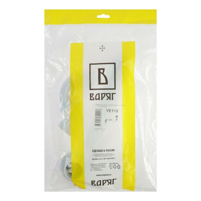 Модель: Сифон для душевого поддона Варяг прямоточный 1 1/2"х40 с г/тр 40х50