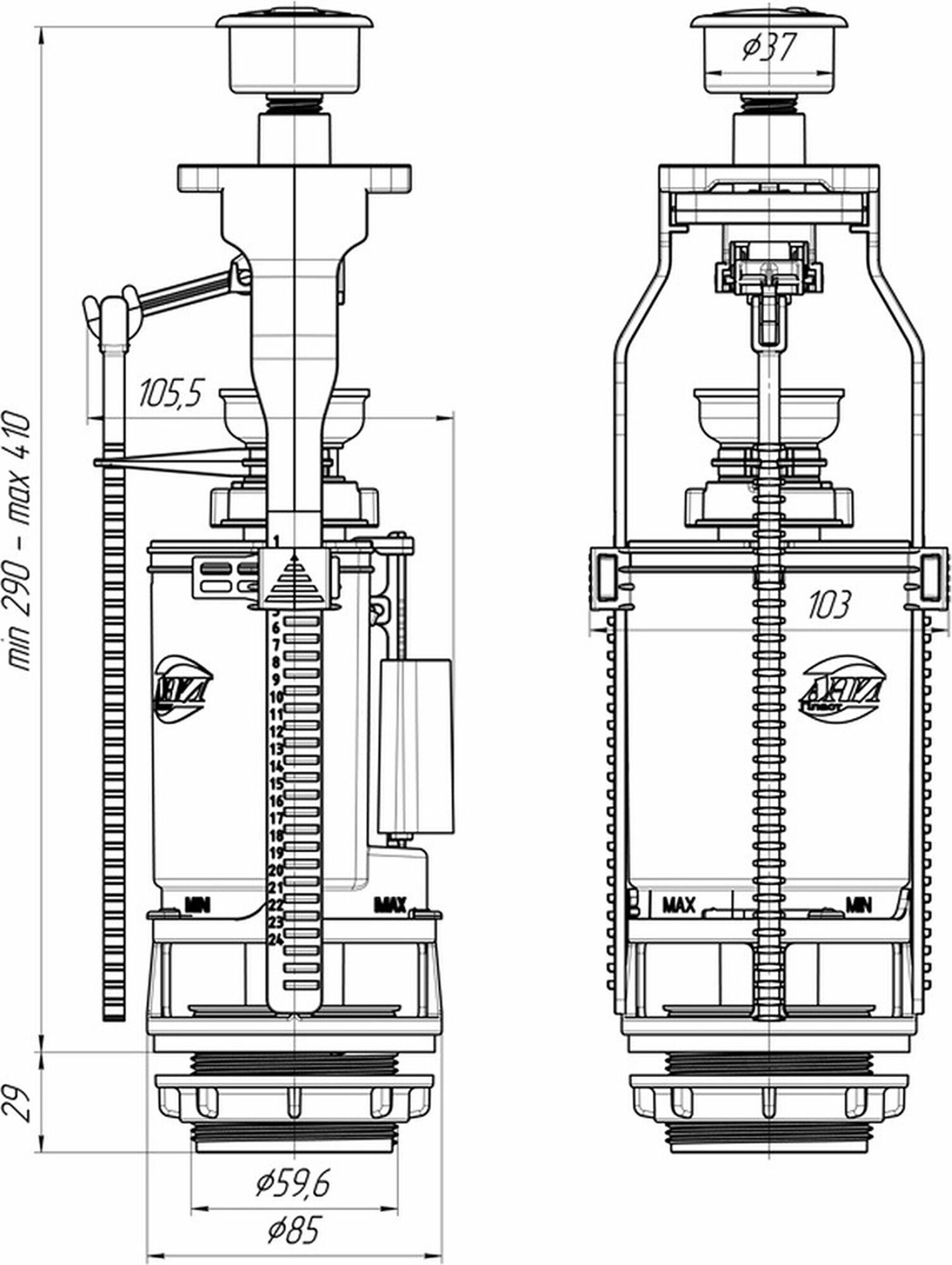 | Минимальная высота регулировки клапана (мм) | 265 |