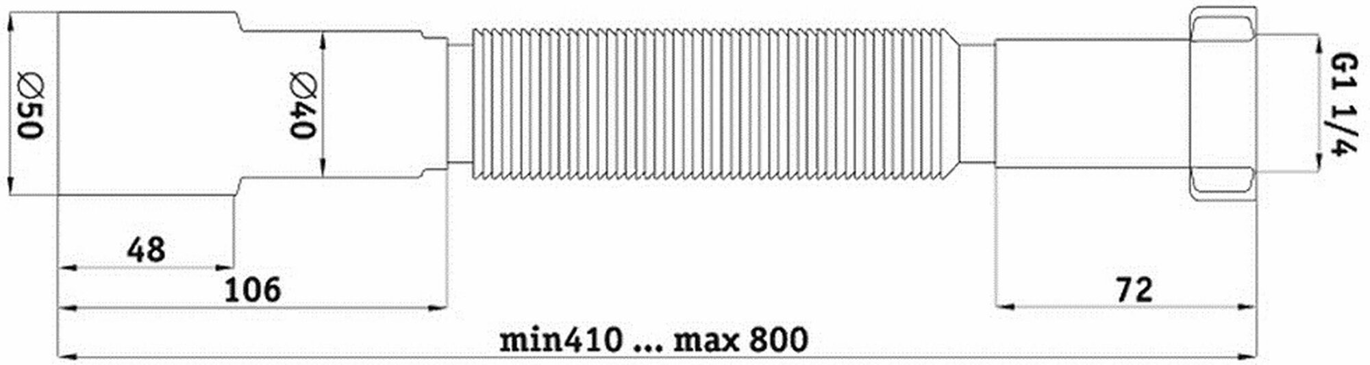 - Диаметр подключения: 1 1/4 , диаметр отвода: 50 мм