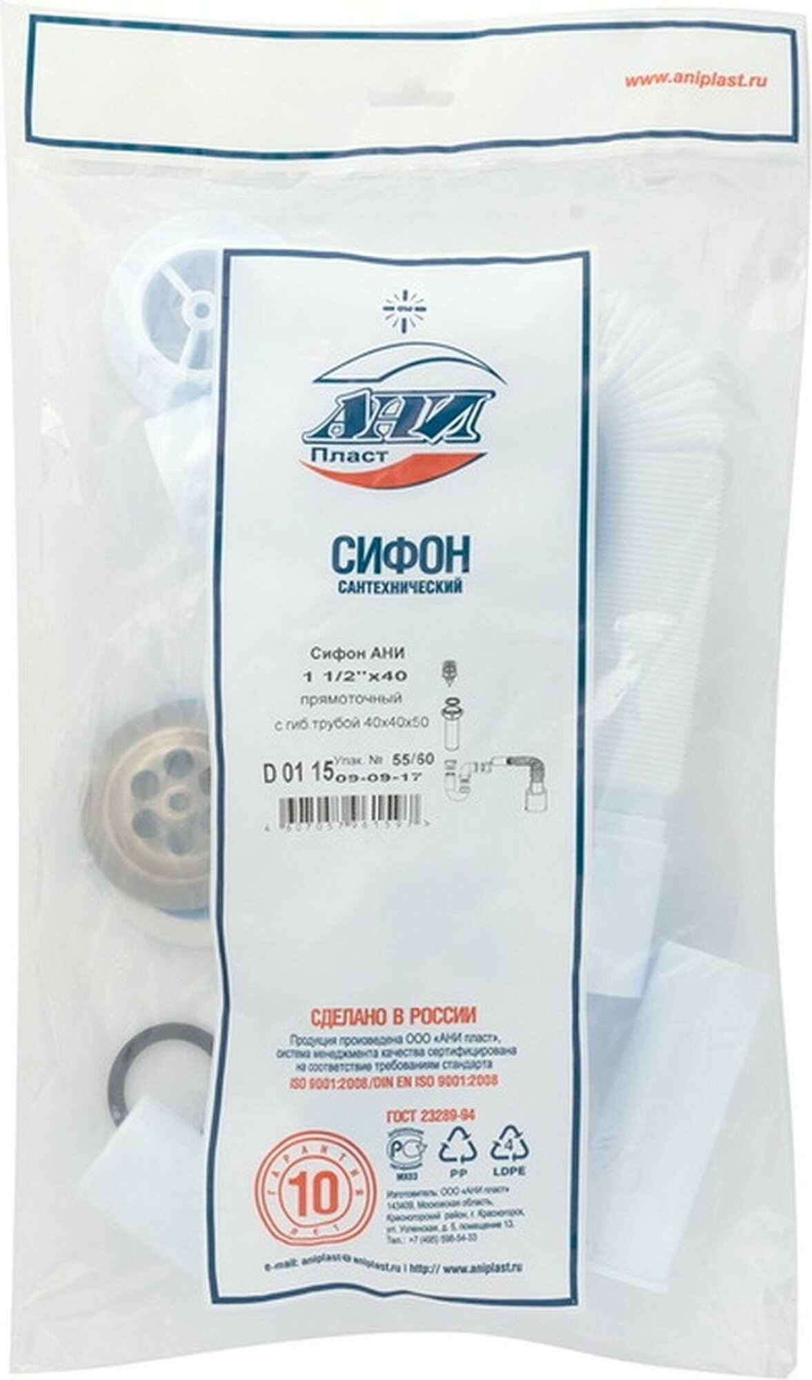 На сегодняшний день товар «Сифоны для моек АНИ Пласт Сифон для мойки АНИ пласт прямоточный 1 1/2"х40 с г/тр 40х40/50» можно купить с кешбеком в 1 магазине: Яндекс.Маркет