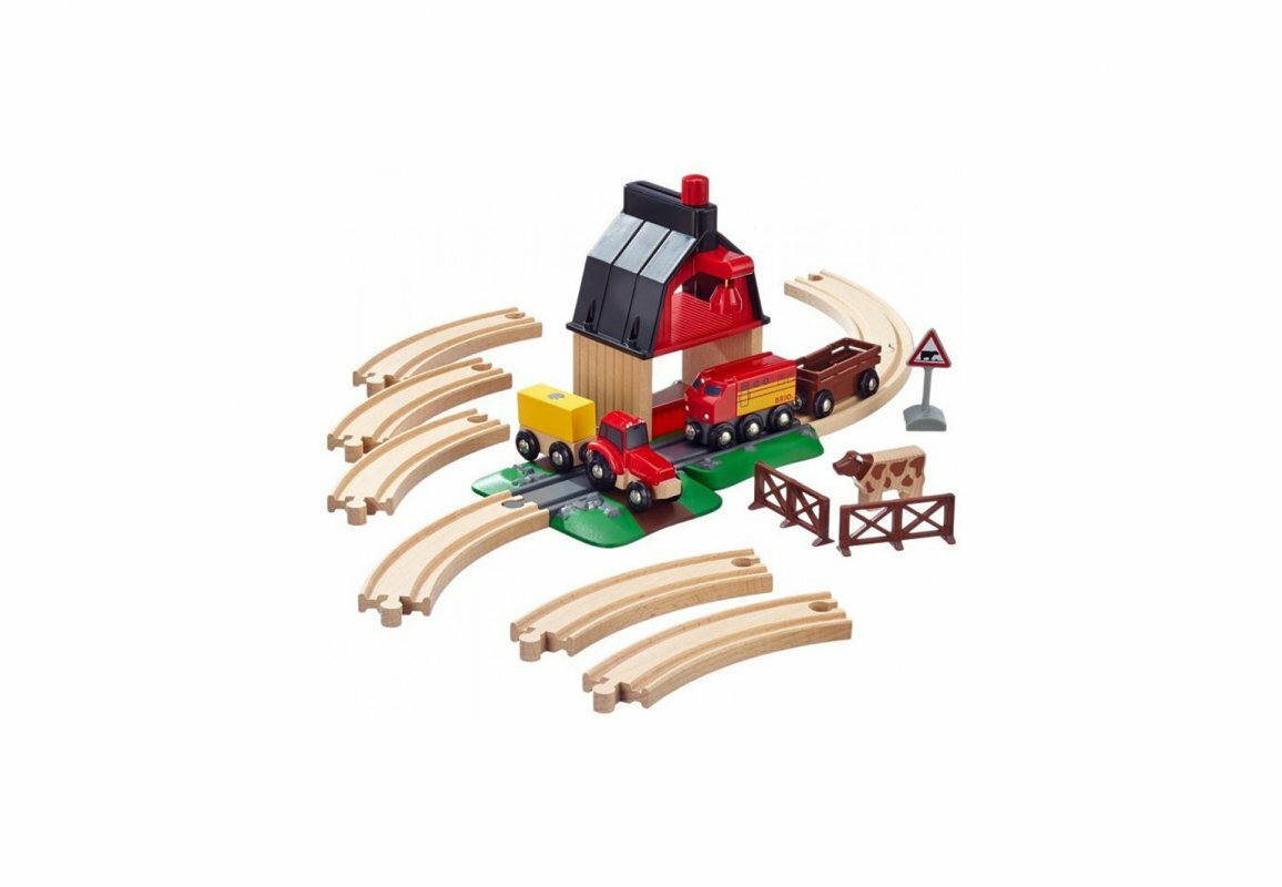 - Деревянная железная дорога BRIO 33719 с переездом и мини-фермой
