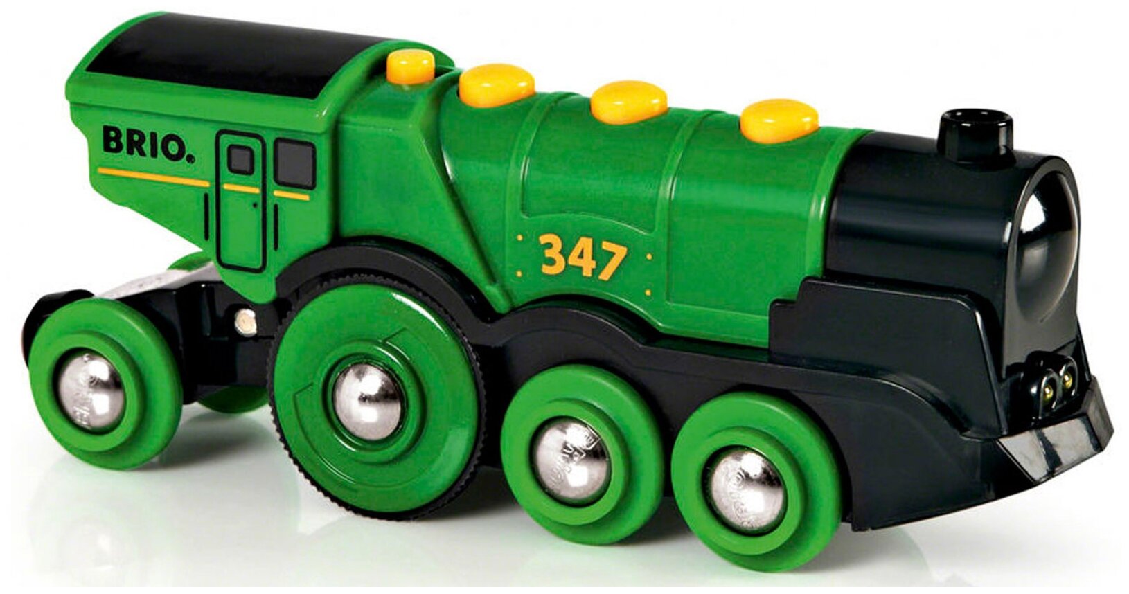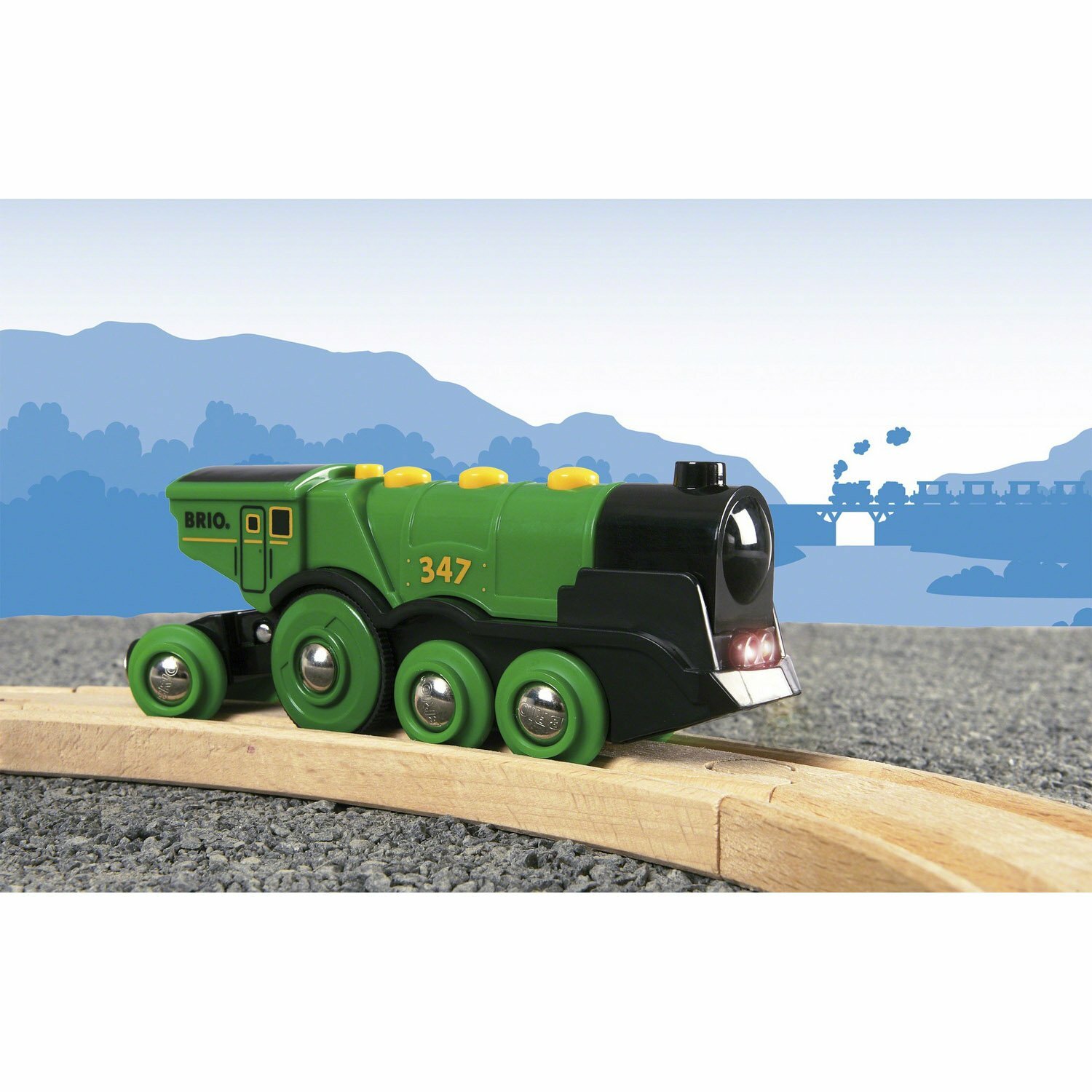 - BRIO World 33593 Grüner Gustav elektrische Lok – Batterie-Lokomotive mit Licht & Sound