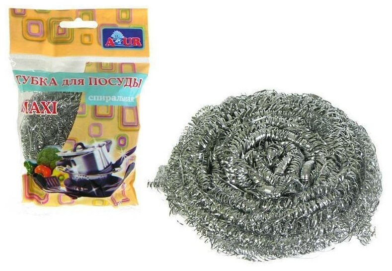 Стальная мочалка для чистки посуды и кастрюль, справляется с самыми трудными загрязнениями. Очень надежная.