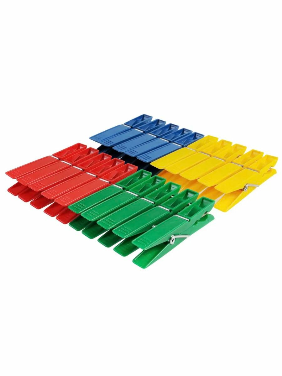 Набор 20 прищепок, красивые классические цвета. Оптимальный размер, прочные, усиленные стальной пружиной. Предназначены для применения внутри и снаружи помещений, не окрашивают одежду.