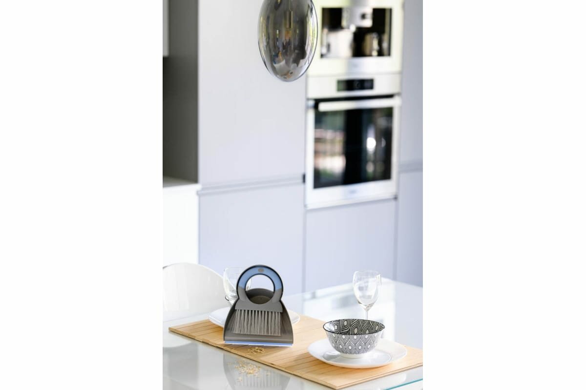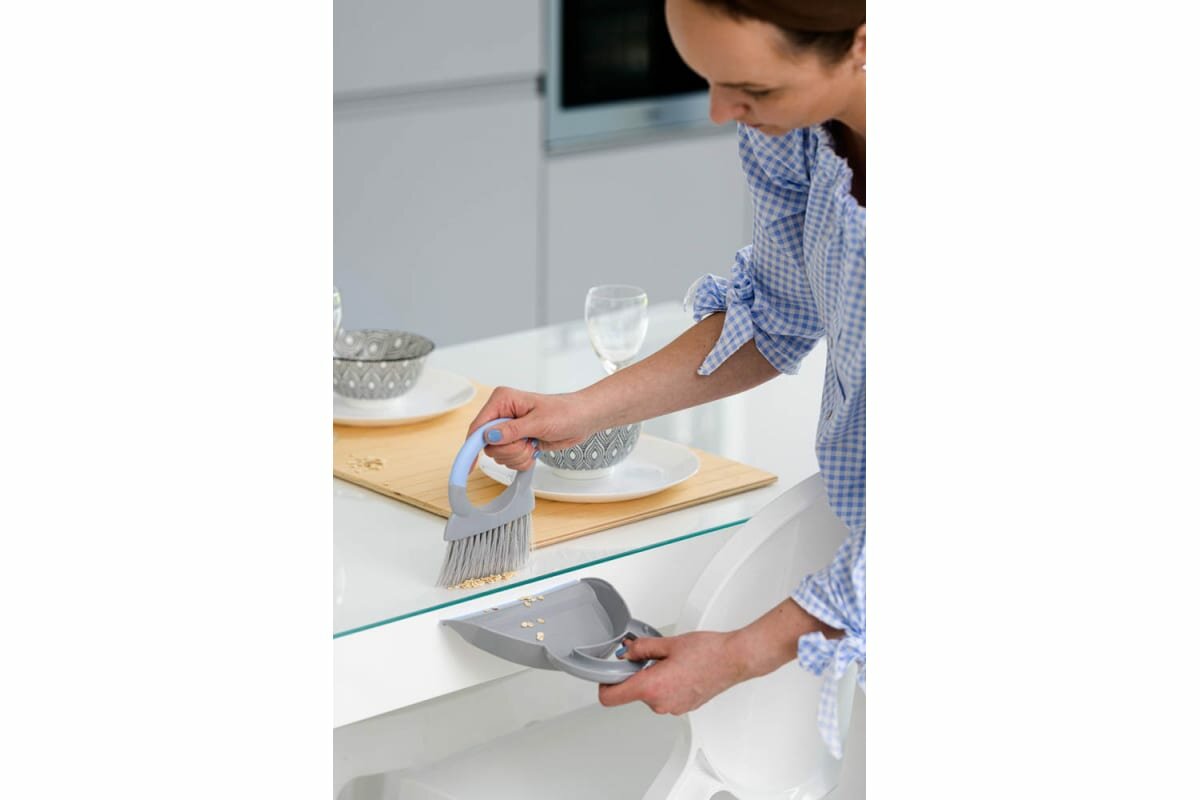 Комплект для уборки стола York Prestige состоит из щетки и совка, изготовленных из прочного пластика. Изделия помогут удалить крошки, не снимая скатерти. Эластичный ворс на щетке, изготовленный из полимера, не оставит от грязи и следа. Удобная форма совка позволит эффективно и быстро совершить уборку в любом помещении. Изделия также оснащены отверстиями для подвешивания.