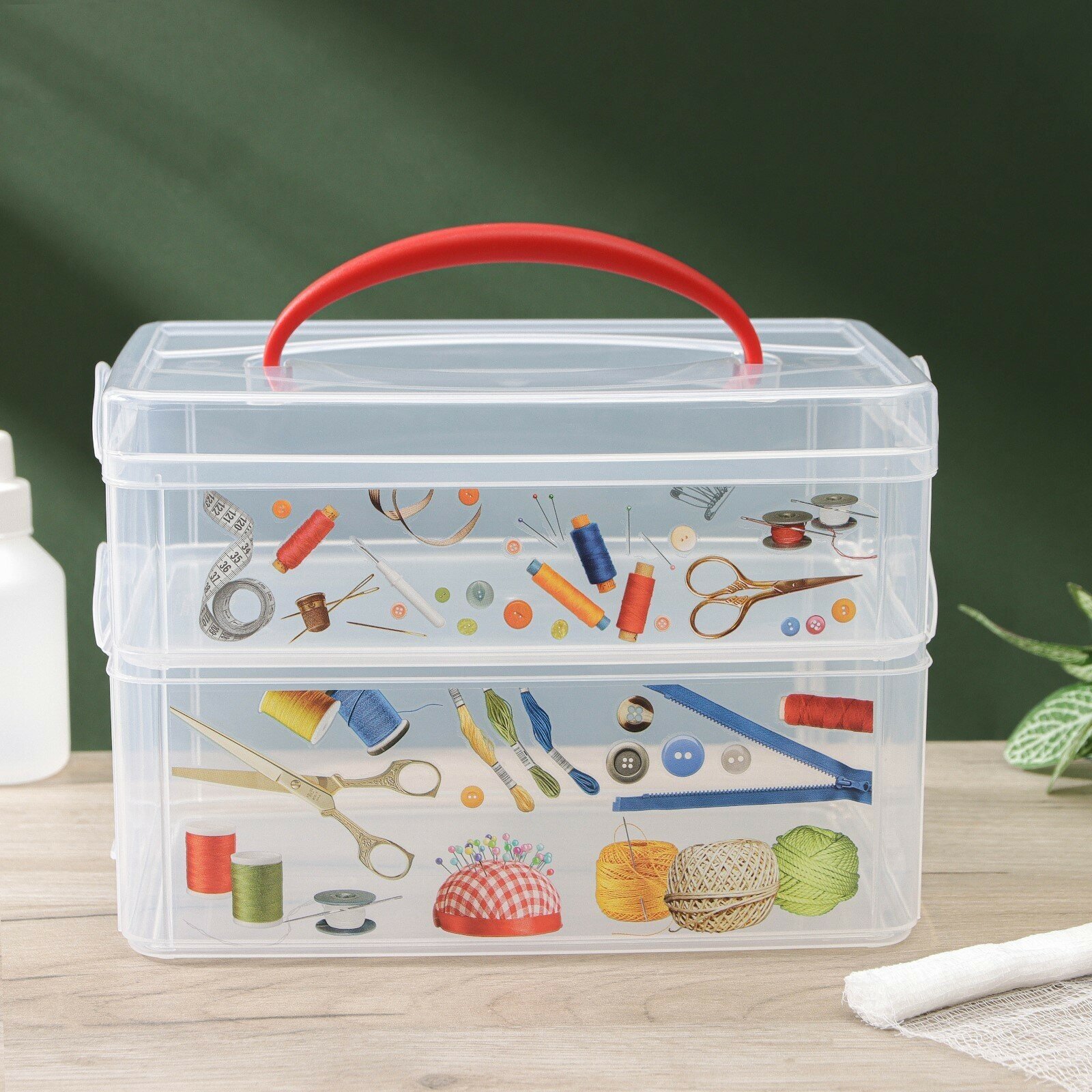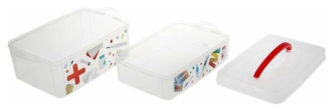 Контейнер для мелочей Econova Multi Box выполнен из высококачественного прозрачного пластика. Это отличное место для хранения материалов для рукоделия, различных аксессуаров. Изделие декорировано ярким рисунком. Контейнер легко открывается, оснащен двумя съемными отделениями и специальной пластиковой ручкой для переноски. Не требует особого ухода. Благодаря малым габаритам, контейнер занимает очень мало места. Контейнер Econova Multi Box - идеальное решение для аккуратного хранения вещей.