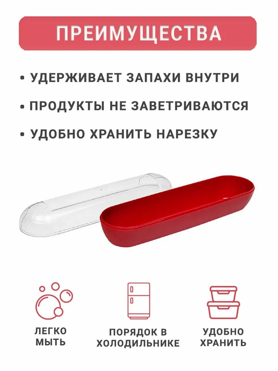 Этот контейнер предназначен для хранения колбас различных сортов целиком и в нарезке. Благодаря прозрачной крышке можно видеть содержимое. Контейнер защищает продукт от посторонних запахов и высыхания. Изделие удобно в эксплуатации, занимает немного места на полке холодильника.