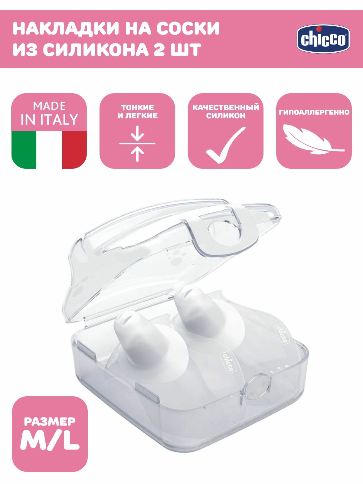 Chicco Накладки на соски защитные (силикон) (2 шт) Силиконовые Защитные 2 шт M/L (размер: M-L)