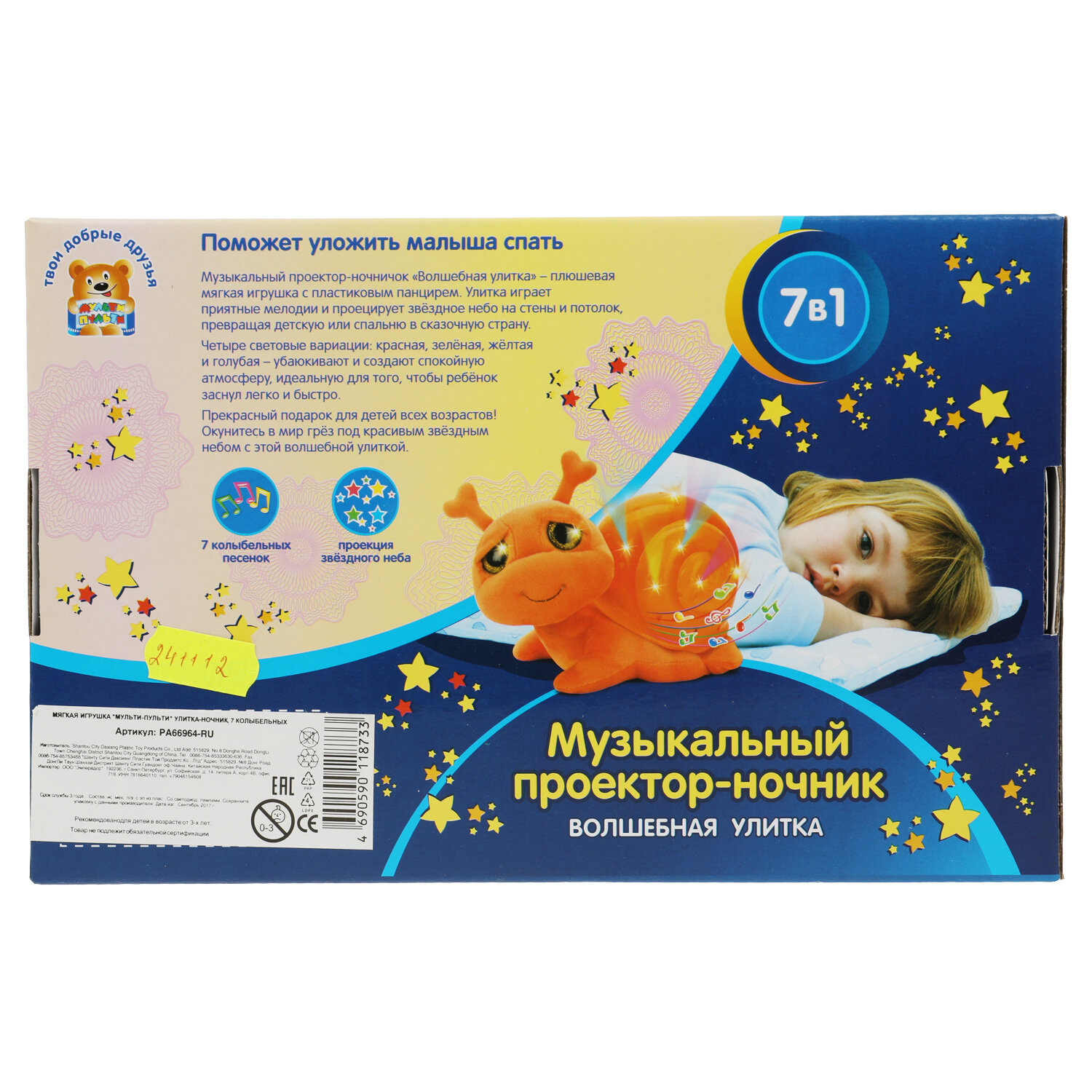 На сегодняшний день товар «Мягкая игрушка Мульти-Пульти Проектор-ночник Улитка 24 см (PA66964-RU) (размер: маленькая)» можно купить с кешбеком в 1 магазине: Яндекс.Маркет
