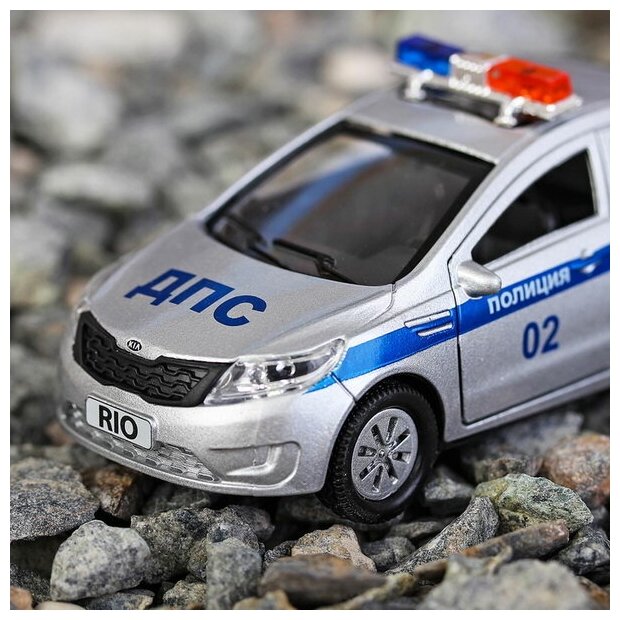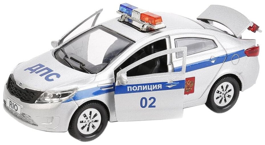 KIA RIO Полиция - это реалистично выполненная модель легкового автомобиля, обладающего встроенным инерционным механизмом. Позволит ощутить себя настоящим слугой закона. У полицейской машины открываются двери и багажник, что делает машину максимально похожей на настоящую. Благодаря этому, всегда можно будет заглянуть машинке внутрь, чтобы убедиться - каждая ее деталь проработана на отлично. Развивает фантазию и мелкую моторику. Размер машинки 12 см. Сделана из прочного высококачественного металла. Рекомендовано детям старше 3-х лет.