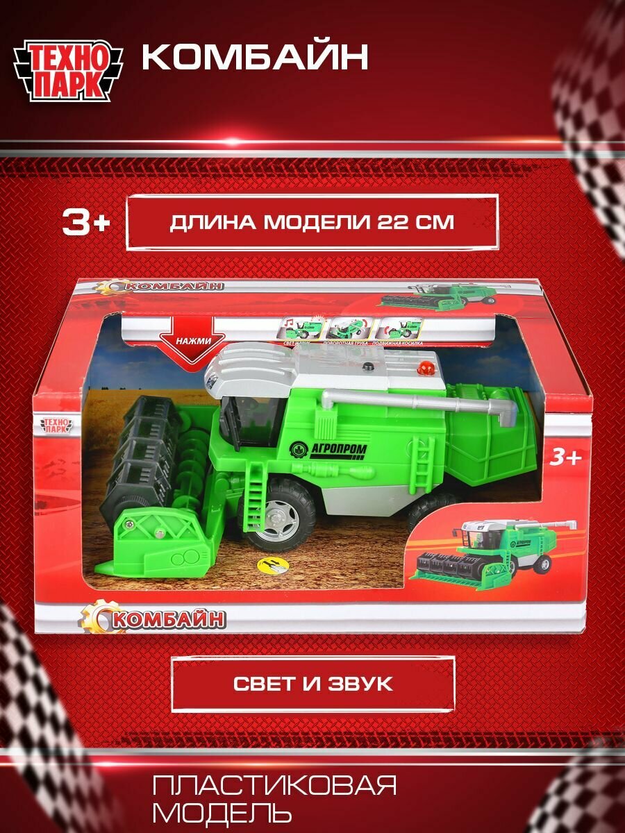 Машина Технопарк Комбайн 22 см Машина инерционная со светом и звуком Комбайн