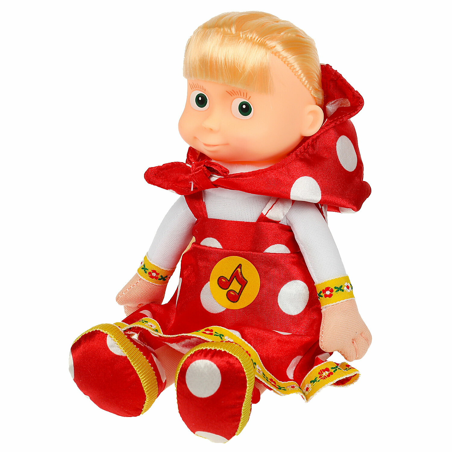 Мягкая кукла Маша, которая является уменьшенной копией героини популярного мультсериала, способна понравиться многим детям. Музыкальная игрушка очень похожа на героиню анимационного фильма Маша и Медведь, которая обладает очень веселым нравом и дружит с лесными животными. Встроенный в игрушку чип позволяет ей произносить несколько фраз, которые точно позабавят девочек и мальчиков.