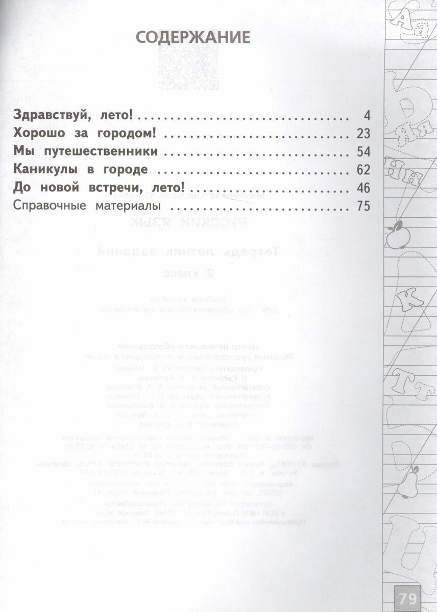 Летние задания по русскому языку 2 класс