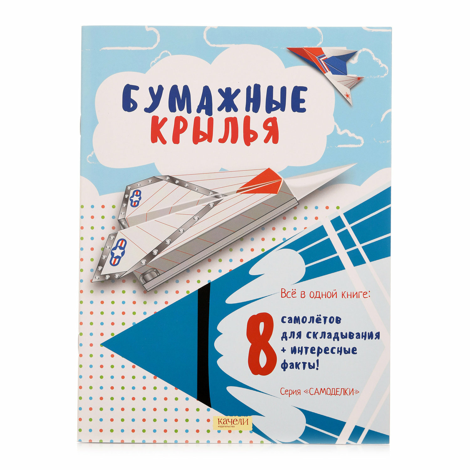 Книга просто класс! Муж сказал, что был бы счастлив, если бы в его детстве такие были) А-то ведь умели только один-два вида самолетов складывать, а тут целых восемь, еще и такие разноцветные, как настоящие! интересные тексты внутри - сын заинтересовался оригами и мы устроили гонки бумажных самолетов, которые там описаны. Еще здорово, что все модели очень разные, но при этом не сильно сложные, сын справился сам