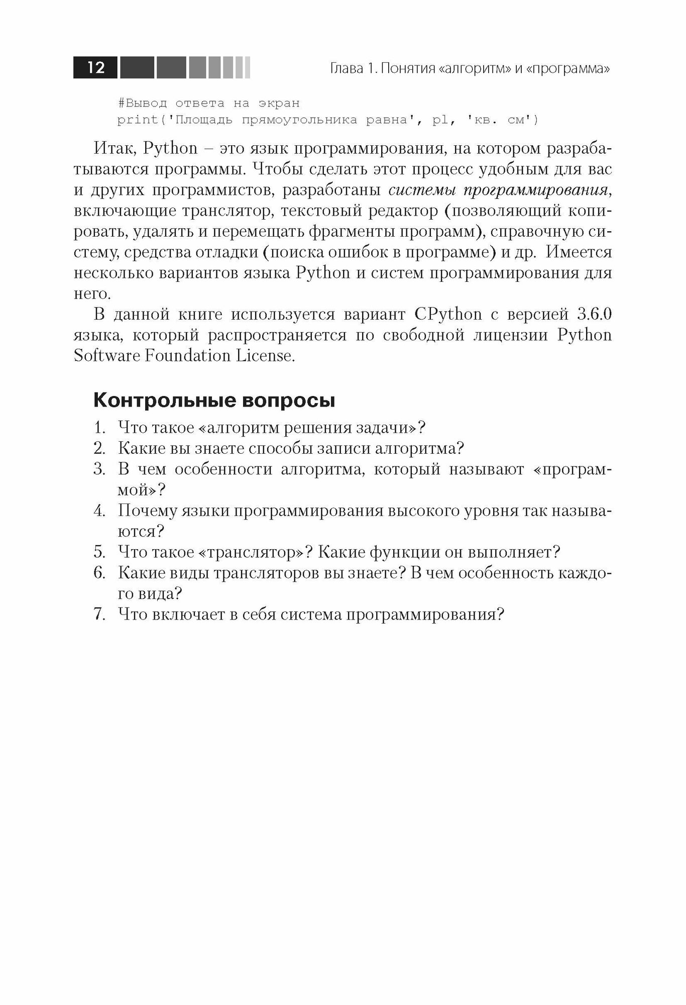 Если вы хотите научиться программировать на языке Python, который в последнее время становится популярным у нас в стране и за рубежом, то эта книга - для вас. В ней рассматриваются особенности разработки компьютерных программ и соответствующие инструкции языка Python, основные структуры данных этого языка (строки, списки, словари, файлы), типовые задачи программирования и методы их решения, а также вопросы совершенствования программы на основе использования функций. Впервые системно и популярно изложена методика разработки программ на языке Python с графическим пользовательским интерфейсом.