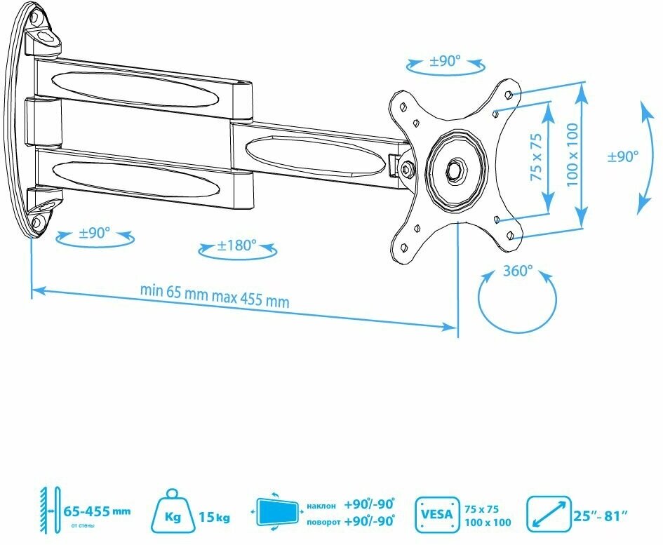 | Расстояние от стены (потолка) | 75 — 455 мм |