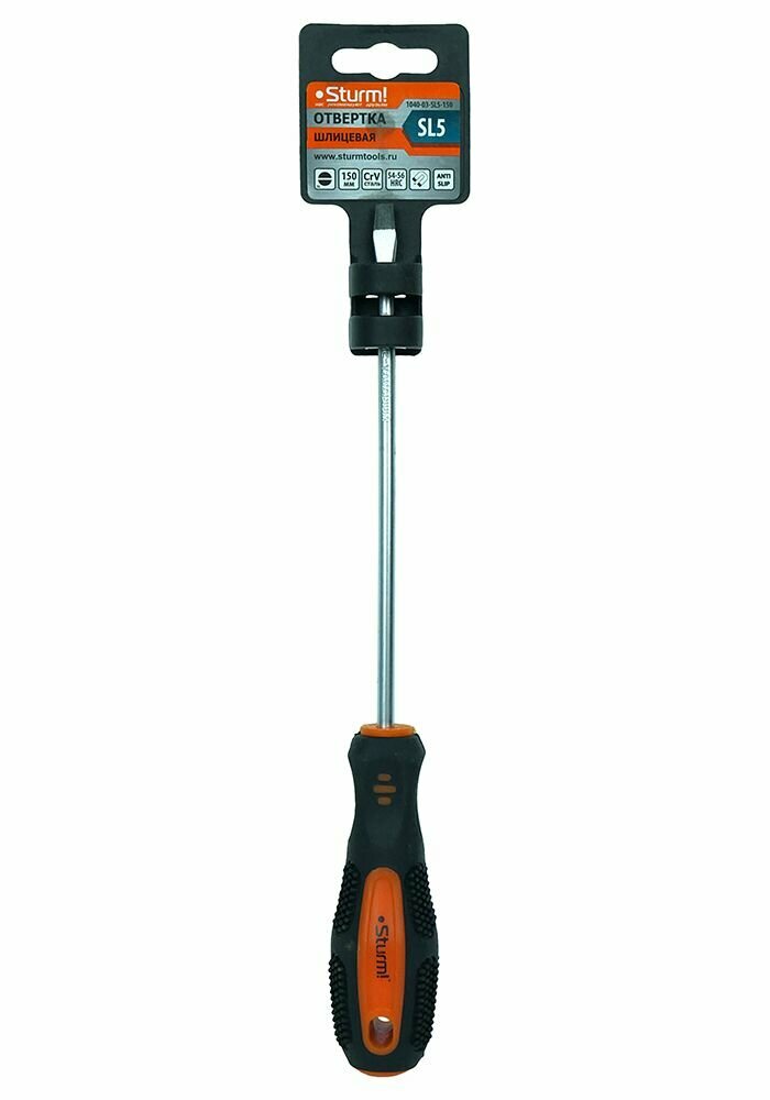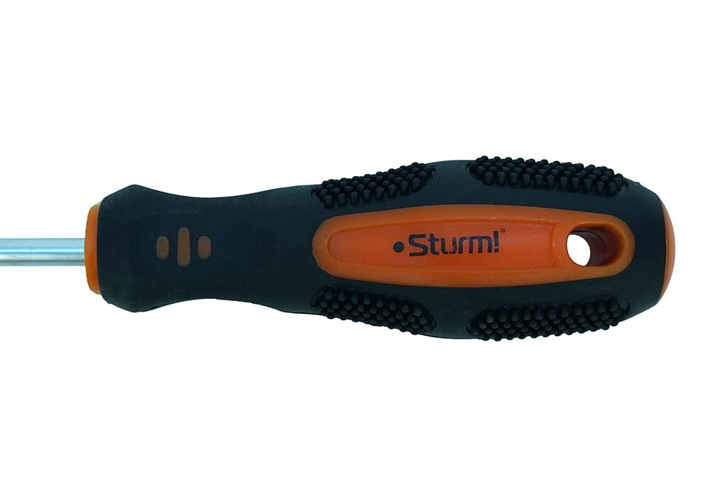 Sturm! Эргономичная рукоятка с мягким резиновым покрытием, препятствующим проскальзыванию отвертки в руке. Рабочая часть отвертки выполнена из высоколегированной хромованадиевой инструментальной стали и имеет высокую твердость и прочность, что определяет длительный срок службы инструмента.