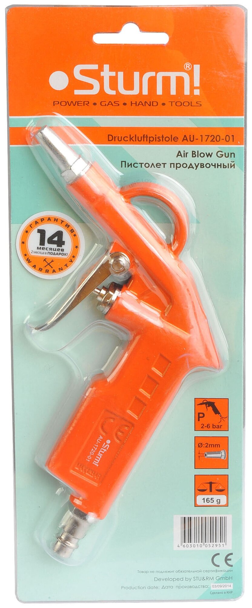 При выполнении работ, в процессе которых требуется продувка узлов, отверстий, деталей и т.п., без такого инструмента как продувочный пистолет просто не обойтись. Отличным решением в данной ситуации станет модель Sturm! , обладающая рабочей производительностью 113 л/мин. При этом, скорость воздушного потока, издаваемого данным инструментом, регулируема путем нажатия на курок. Стоит отметить, что рассматриваемый пистолет может похвастаться долгим сроком службы и качеством выполняемой работы, так как его корпус и воздушные каналы изготовлены из прочного сплава алюминия. Кроме того, благодаря быстросъёмным соединениям, обеспечивается легкое подключение и отключение представленного инструмента. Подвесное отверстие позволяет подвесить инструмент для более удобного хранения.