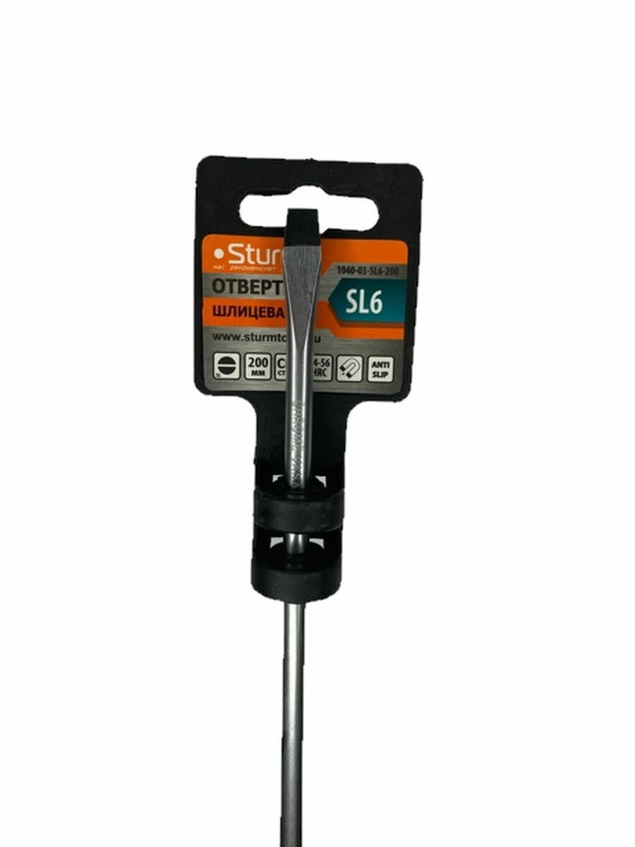 Sturm! Эргономичная рукоятка с мягким резиновым покрытием, препятствующим проскальзыванию отвертки в руке. Рабочая часть отвертки выполнена из высоколегированной хромованадиевой инструментальной стали и имеет высокую твердость и прочность, что определяет длительный срок службы инструмента.