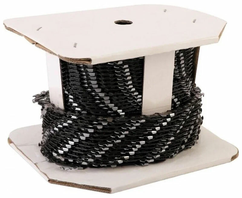 Цепь для цепной пилы изготовлена в Китае. Для наиболее эффективной работы устройства нужно заботиться о его смазке. Лишь при достаточном количестве масла цепь будет отлично работать, не повреждая при этом саму цепную пилу.